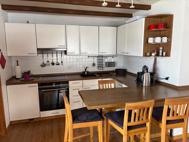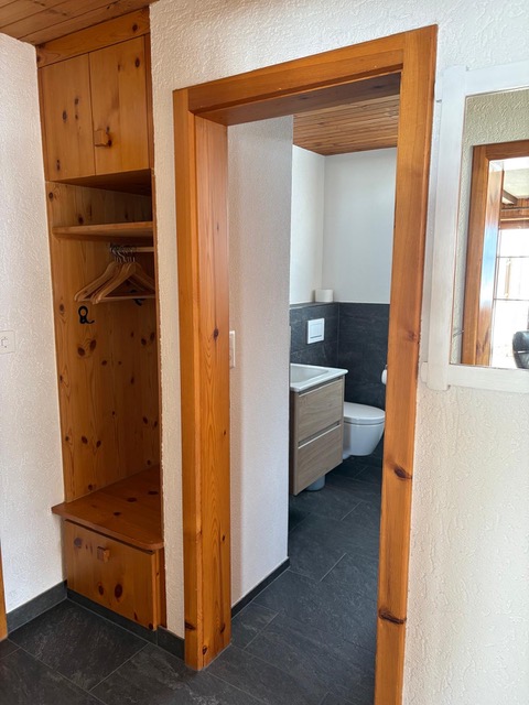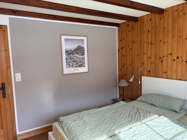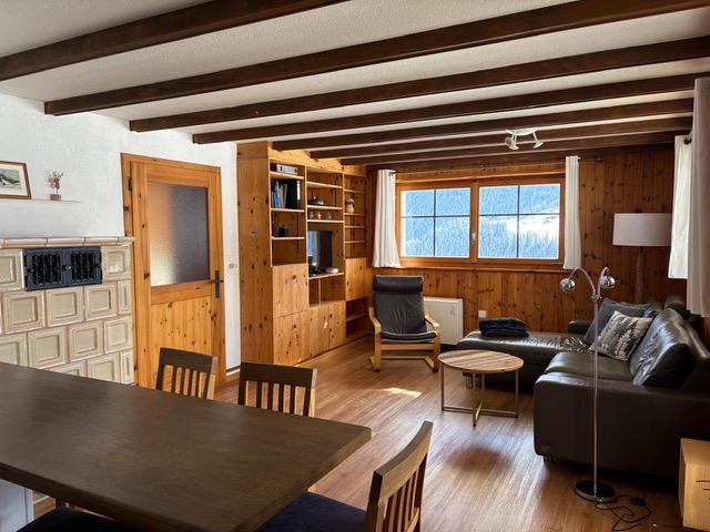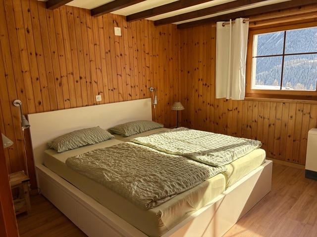 3 1/2 Zimmerwohnungen (ca. 65m 2) im Untergeschoss (Haus am Hang), Mehrfamilienhaus ohne Lift, grosse Terrasse Südwest, Autoabstellplatz vor dem Haus, Mitbenützung des Skiraumes; Küche ohne Backofen, 4-Plattenglaskeramikherd, Kühlschrank mit Tiefgefrierfach; Bad/WC; 1 Schlafzimmer mit 1 Doppelbett (180*200 Bett, zwei Matratzen), 1 Schlafzimmer mit 2 Einzelbetten (90*200); Wohnzimmer mit Polstergruppe, digital HD-TV und schnellem Internet (WLAN), Essecke; Bettwäsche, Frotteewäsche, Küchentücher, Duvet nordisch; Abfallsäcke blau.; Heizung via Elektrospeicheröfen; Haustiere erlaubt; Nichtraucher-Wohnung!